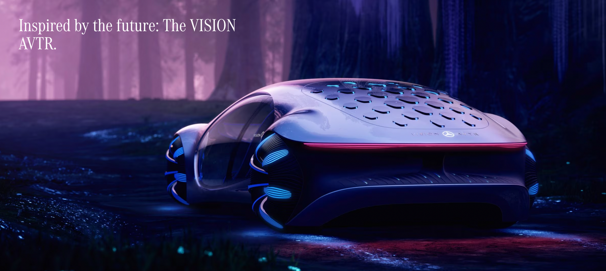 The original brand campaign features the Mercedes-Benz Vision AVTR, a concept car that was inspired by the Avatar movie. The Vision AVTR, which stands for Advanced Vehicle Transformation, is a futuristic concept car that is designed to be environmentally friendly and sustainable. It is powered by a battery that is made from a compostable material, and it has no steering wheel, instead using a "biometric connection" between the car and driver. The campaign's focus is on showcasing the Vision AVTR's advanced technology and sustainable features.