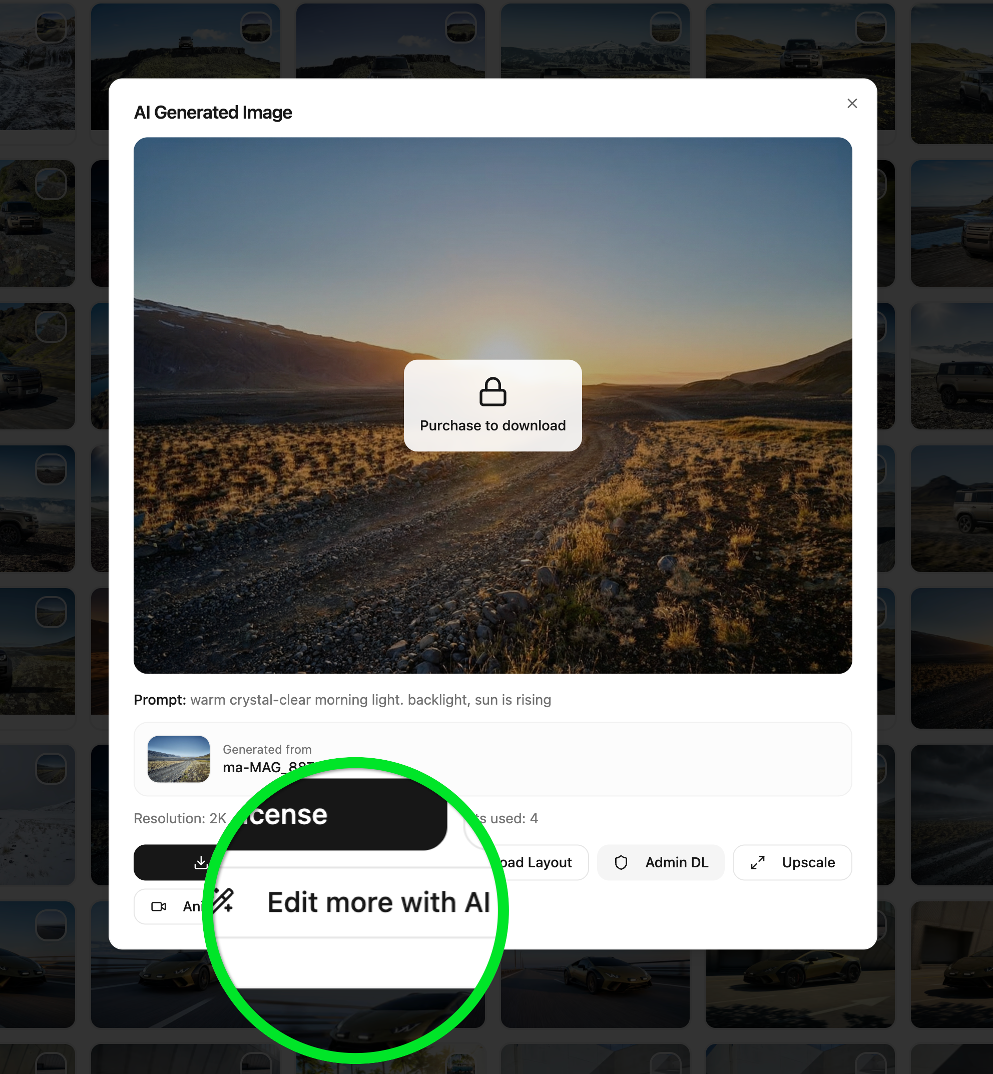 The new MAGROUND website integrates powerful AI tools that exponentially expand the flexibility of photographed backplates. What once meant extensive Photoshop work or additional production costs can now be realized in minutes.