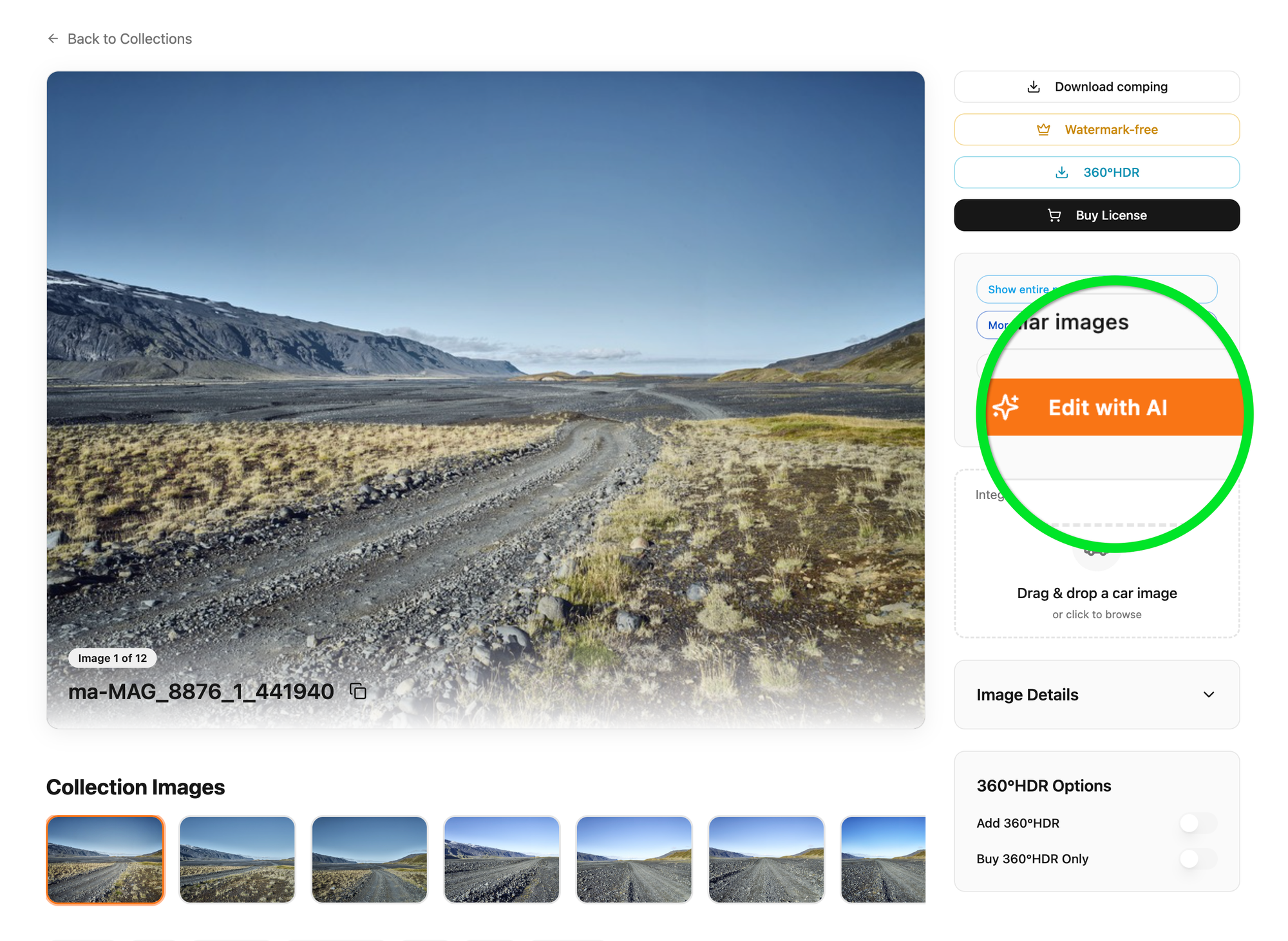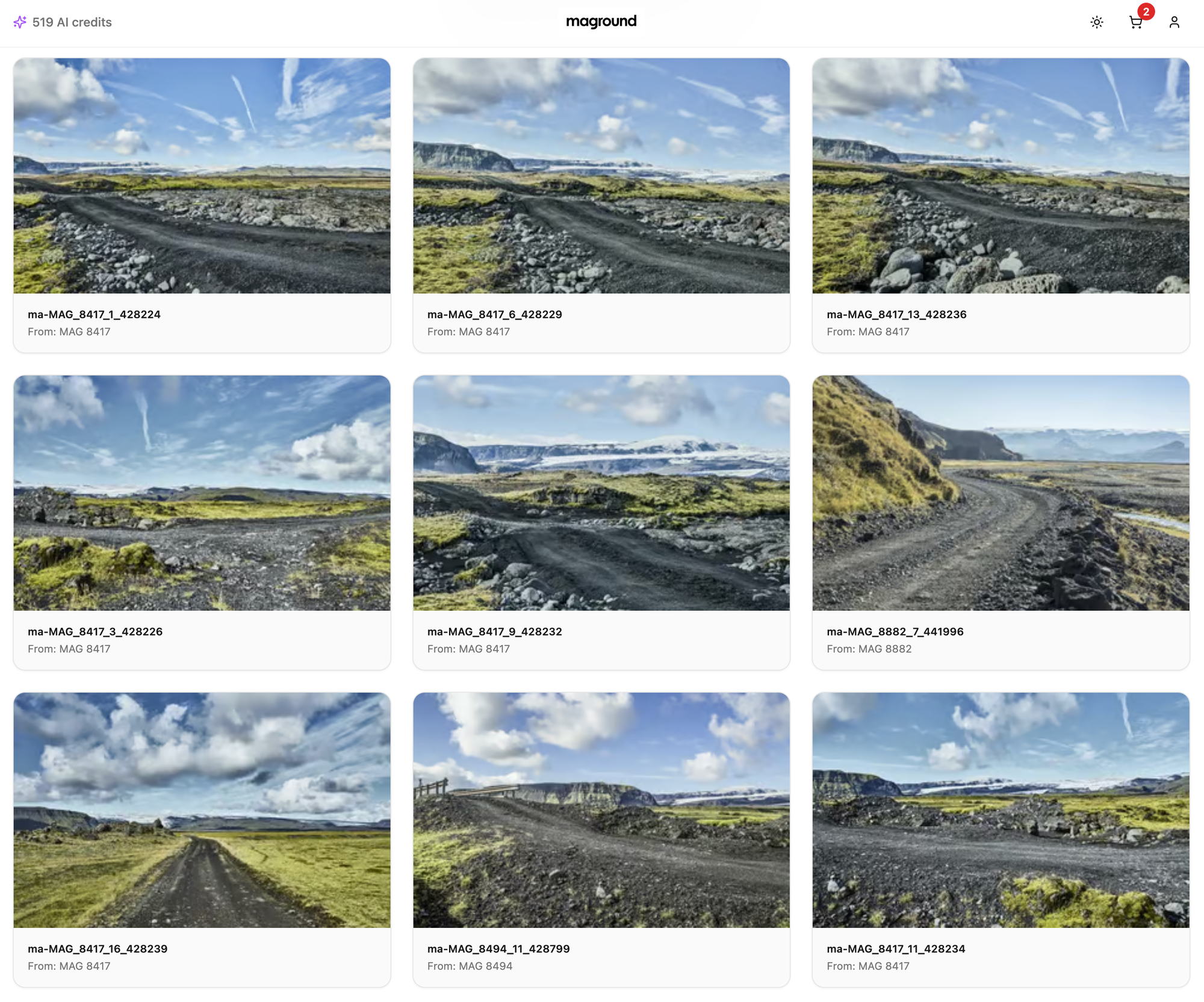 All backplates in the Iceland Collection are available with complete HDR spheres and can be edited directly on the MAGROUND platform using the integrated AI tools. Subscription plans provide unrestricted access to the entire collection and all AI features.