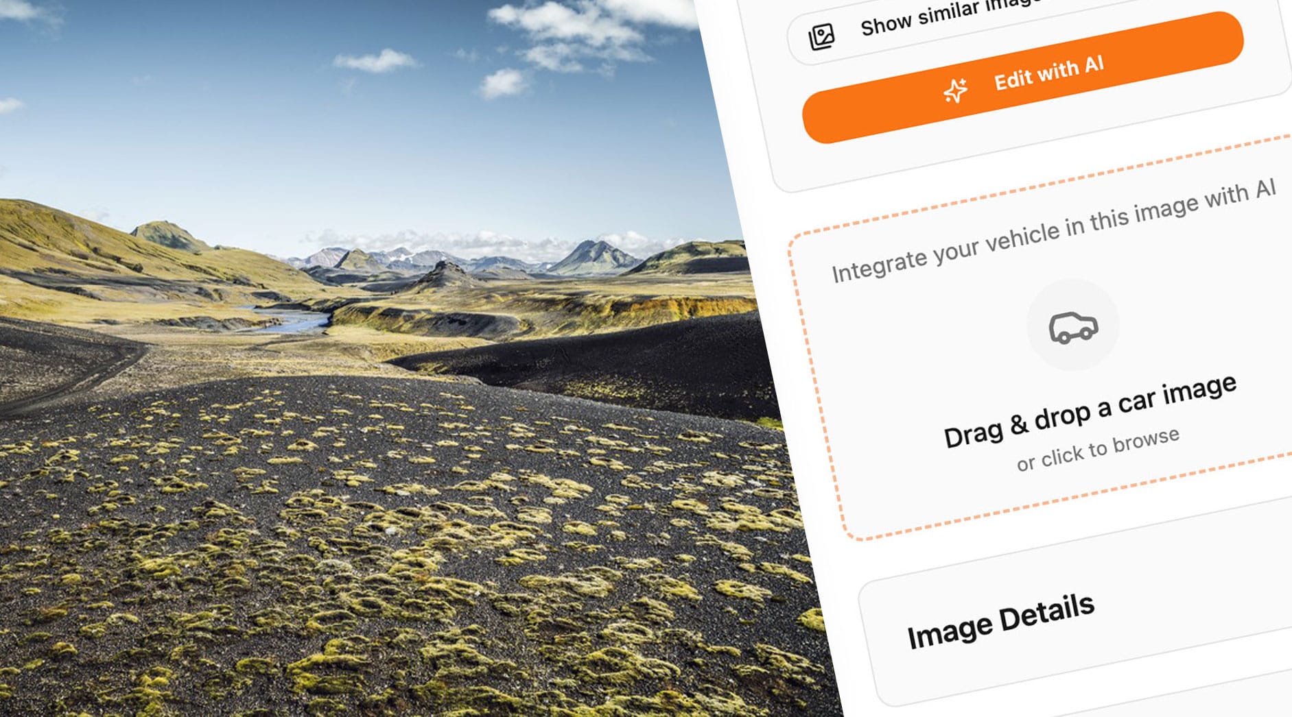 The revolutionary "Add Your Car" feature fundamentally accelerates the creative process. Instead of elaborate CGI productions for initial concepts or presentations, AI integration enables rapid placement of vehicles into Iceland backplates.