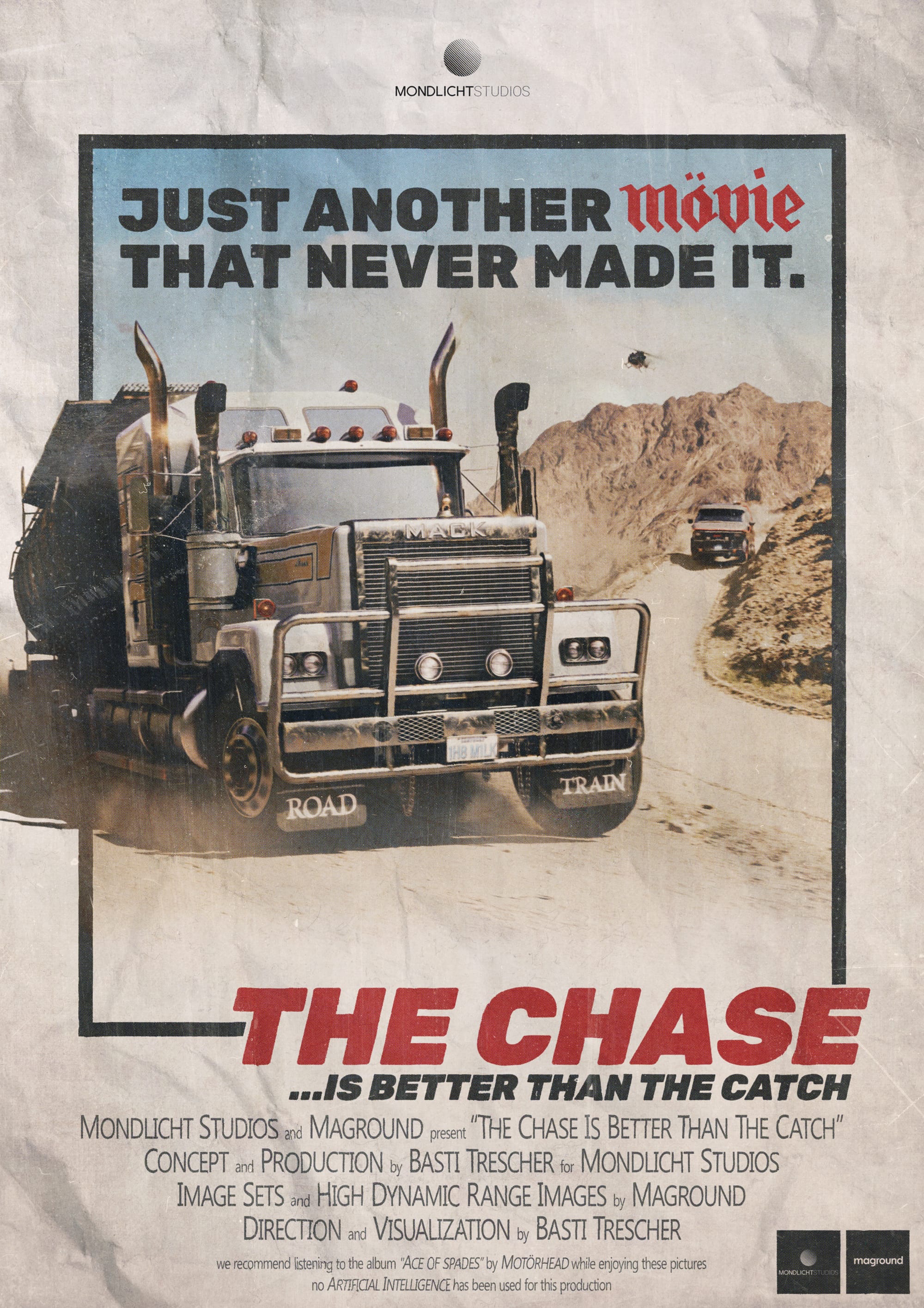 This collaboration between Mondlicht Studios and MAGROUND not only pay tribute to the iconic A-Team and their unforgettable escapades but also to the legendary "Ace of Spades" album by Motörhead. All visuals are created by CG and Postproduction company Mondlicht Studios with MAGROUND content.