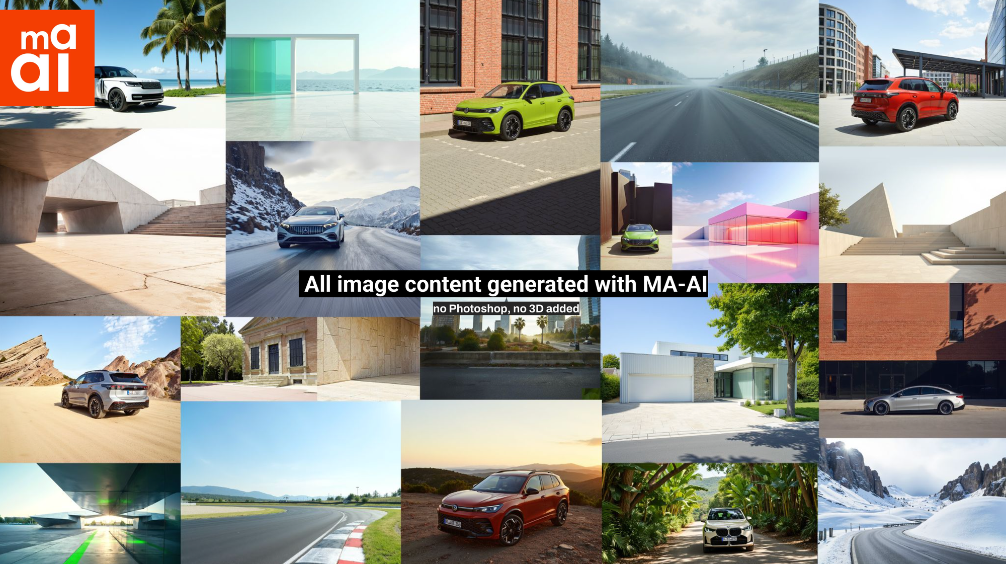 In today’s rapidly evolving world of content creation, combining traditional backplate photography with cutting-edge AI tools, like MA-AI, opens up endless opportunities. At MAGROUND, we provide the ultimate flexibility for creating stunning automotive visuals—whether you rely on photography, AI, CGI, or a combination of all worlds.