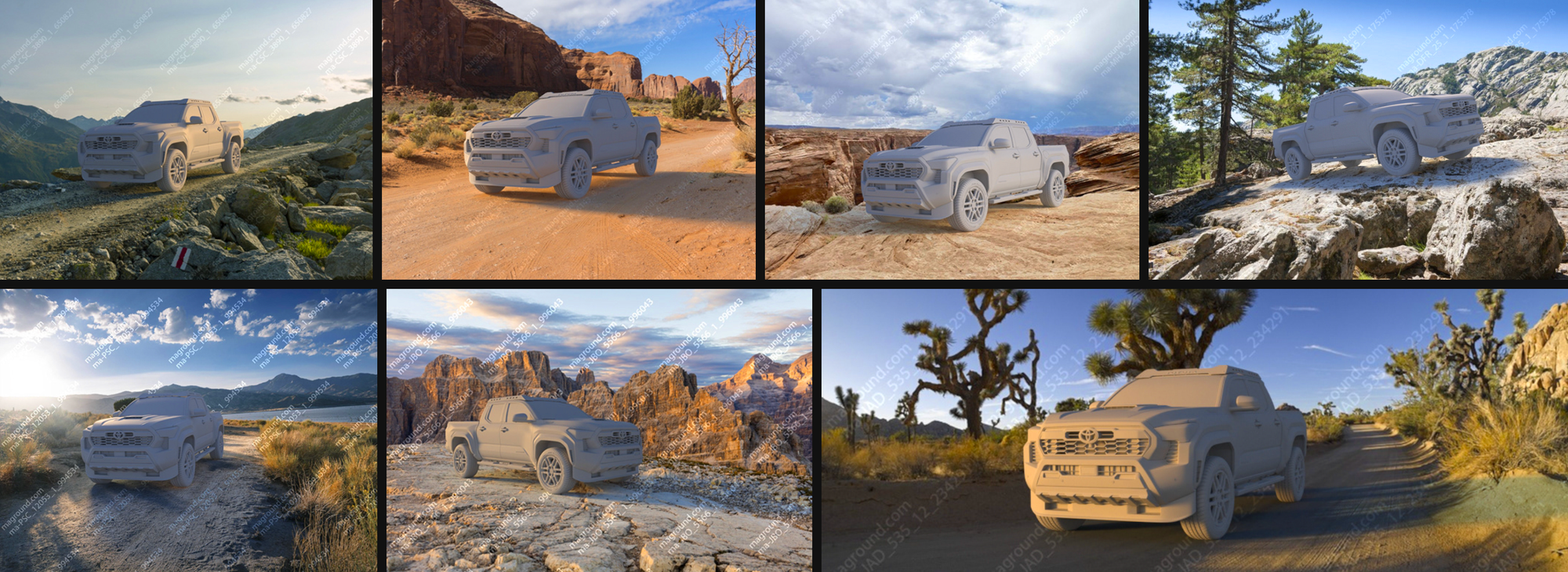 The choice of a suitable setting is of fundamental importance in automotive marketing. It frames the narrative, sets the tone and significantly influences the viewer's perception of the vehicle. MAGROUND's extensive selection of backplates and HDRi from locations from all around the world provides marketers with countless high-quality images that can enhance the presentation of any vehicle, whether it's a rugged SUV or a sleek city car. The new Toyota Tacoma marketing images illustrate this effectively, emphasizing the design and appeal of the vehicle to capture the audience's attention.