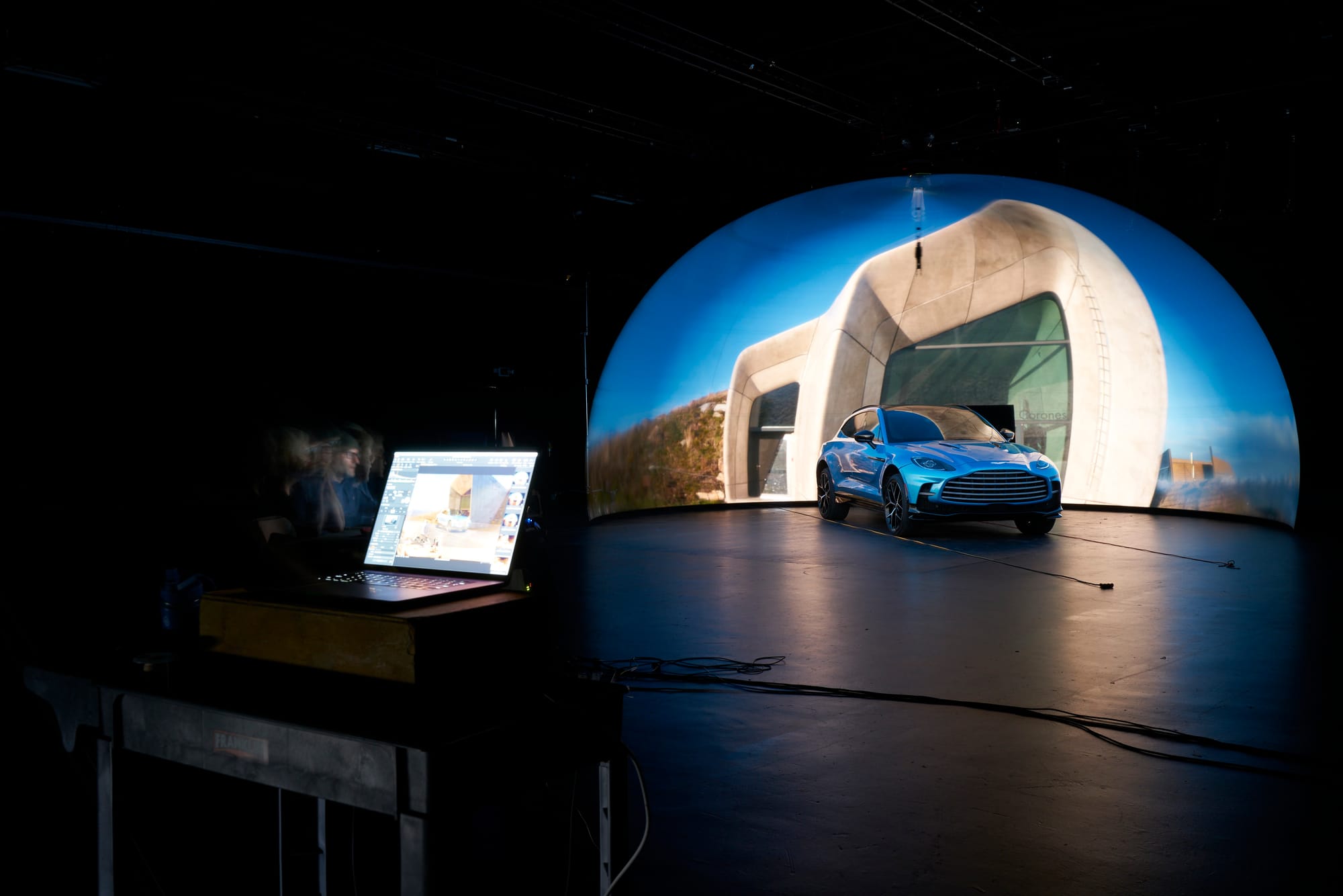 California-based photographer Alex Bernstein demonstrated this innovative approach in a series of striking images featuring the Aston Martin SUV. He chose atmospheric backplates and HDR domes from MAGROUND’s Austrian collection from the Alps, pairing futuristic architecture, and alpine panorama views with the dramatic light of the blue hour. The result was a captivating visual narrative reminiscent of a James Bond scene.