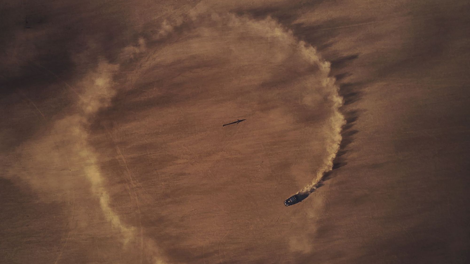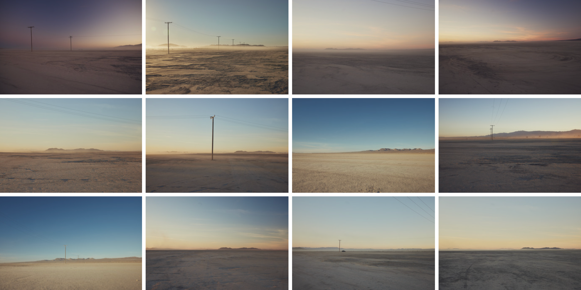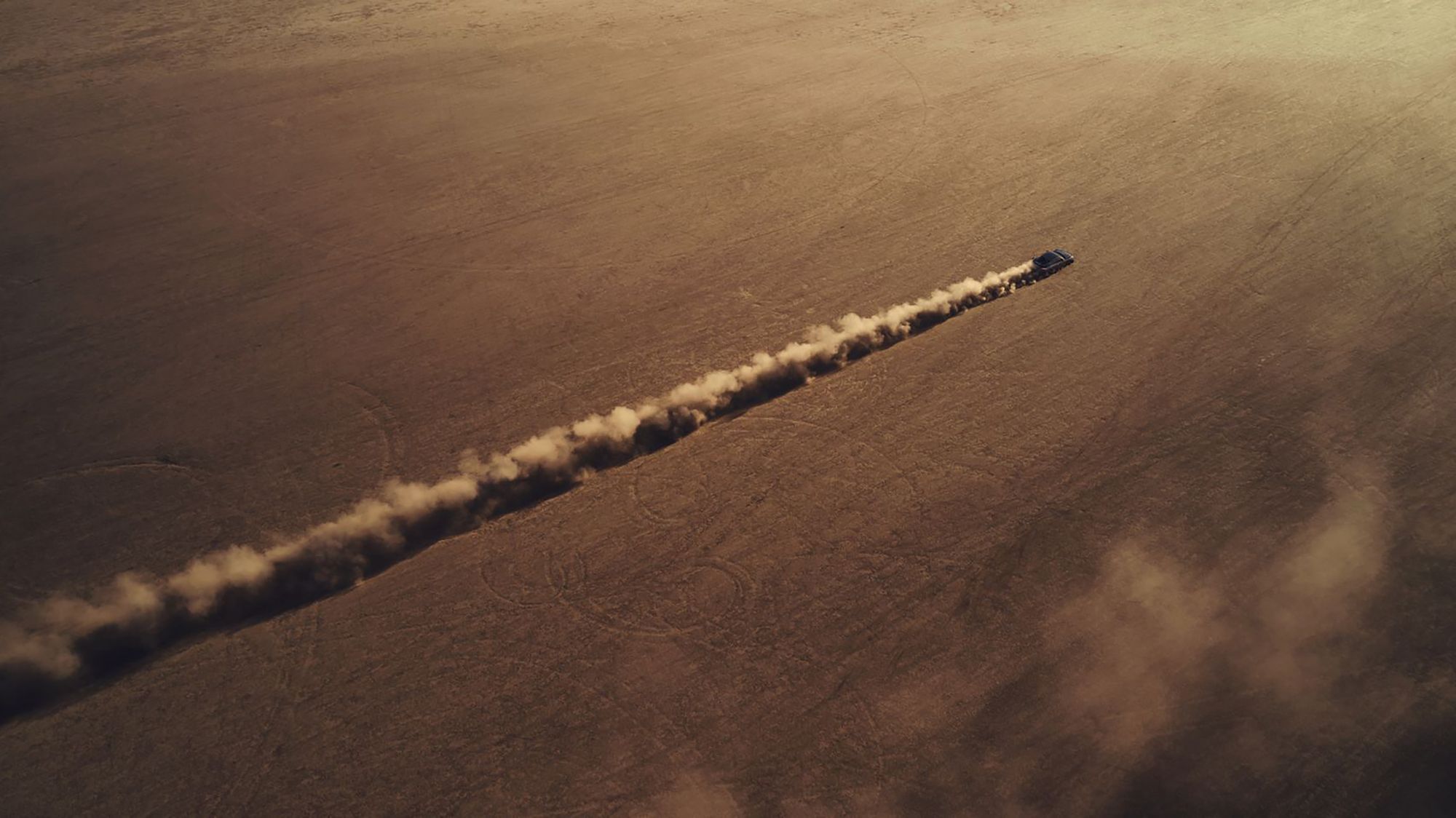 Of course, the dramatic light in the evening desert, just before the blue hour, plays a big role in creating the atmosphere of this series of images. The composition of the vehicle against the vastnes creates a visual narrative that is both powerful and poetic.