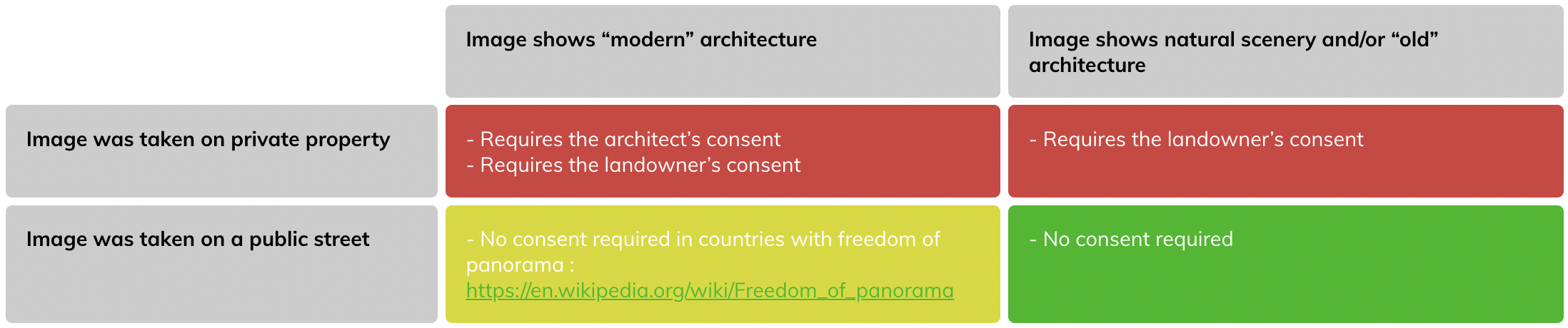 To have a good overview of which countries have which laws, we are providing this link from Wikipedia that displays it very well by region: https://en.wikipedia.org/wiki/Freedom_of_panorama